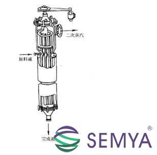 上述各種蒸發(fā)器的主要缺點(diǎn)是加熱室內(nèi)滯料量大,致使物料在高溫下停留時間長,特別不適于處理熱敏性物料。在膜式蒸發(fā)器內(nèi),溶液只通過加熱室一次即可濃縮到需要的濃度,停留時間僅為數(shù)秒或十余秒鐘。操作過程中溶液沿加熱管壁呈傳熱效果最佳的膜狀流動。