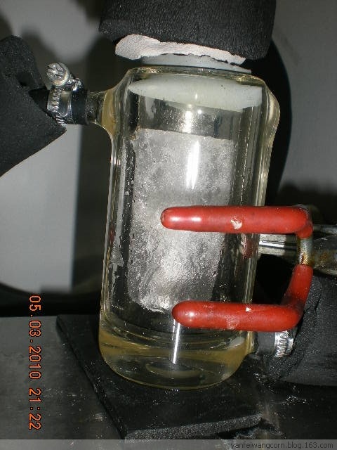 下圖就是cold finger形式的熔融結(jié)晶器,及發(fā)汗完的晶體圖片。