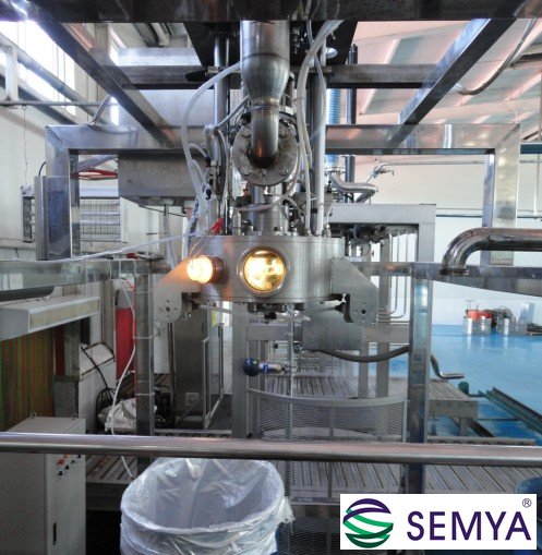 該工序采用FBR無菌灌裝機(jī),濃縮果汁經(jīng)管道輸送至無菌灌裝機(jī),利用灌裝機(jī)灌裝頭腔室溫度≥95℃的滅菌條件將果汁灌入無菌袋中(外圍為保護(hù)袋和鋼桶),灌裝重量通過質(zhì)量流量計來控制。